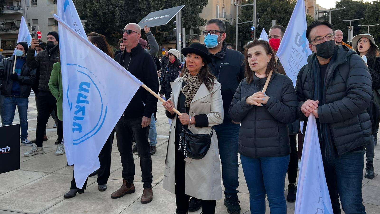 "ליברמן ליברמן תתעורר, שחקנים שווים יותר" ו" ממשלה ביזיון, אין חיים בלי תיאטרון" היו רק חלק מהקריאות שהשמיעו המפגינים בעודם מניפים את דגלי שח"ם.