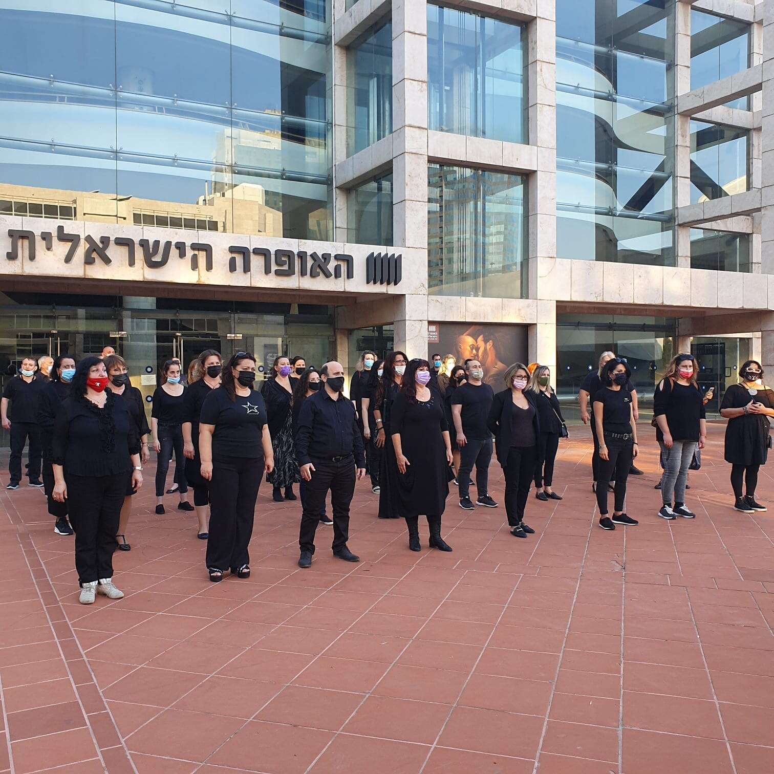 עם סיומו של השימוע האחרון מבין 55 שימועים שהתקיימו במשך ארבעה ימים רצופים, התאספו היום (שלישי) זמרי מקהלת האופרה מחוץ לבית האופרה, בניצוחו של מנצח הבית ישי שטקלר ומנצח המקהלה בדימוס, וביצעו את "שירת העבדים" של ורדי, כאות מחאה על החלטת ההנהלה לפטר לפחות 55 זמרי מקהלה מתוך 62. עשרות עוברי אורח התאספו מסביב לנגנים, עודדו אותם ומחאו להם כפיים.