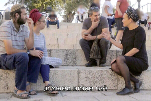 גרנט שוחחה עם סקאלה דתית לאומית נרחבת ושמעה מגוון דעות. היא עברה בין אקטיביסטים, שמעה נבואות דיסטופיות, תיעדה ניסיונות התססה של יהודים על ההר, ושאלה נשים אם לא מפריע להן להילחם על בית מקדש שהכניסה אליו תוגבל רק לגברים. כשהאווירה סביבה התפתחה לעימות לוהט, גרנט מילטה הצידה שתי צעירות עם דגל ישראל. היא חששה לחייהן והעניקה להן חיבוק אימהי. "אני אעשה לכן סידור קטן במוח", לחשה להן תוך כדי החיבוק, ואחת ענתה לה: "זה לא יפה, אנחנו לא צריכות סיבוב במוח. אנחנו לגיטימיות".