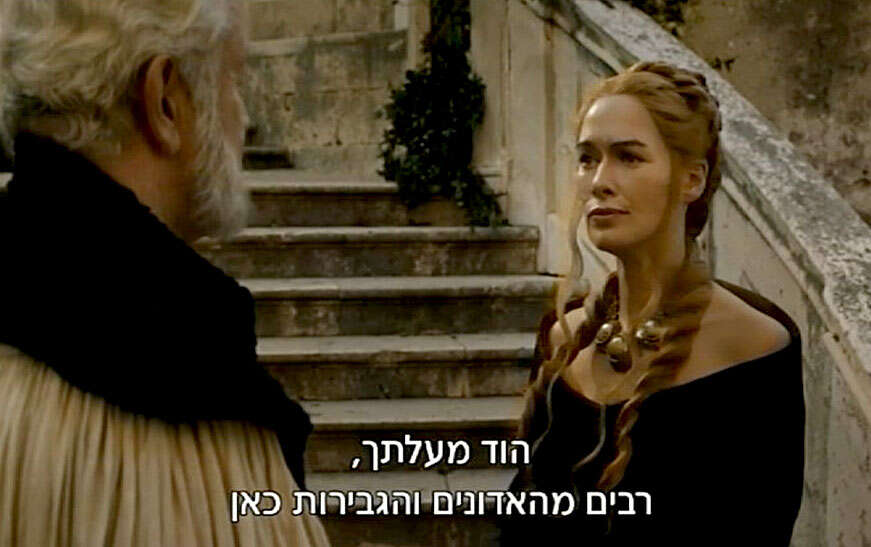 3קשה להסיט את העיניים מ"משחקי הכס", לא רק כי בכל סצנה שלישית מישהו מתפשט שם - מינון סצנות העירום בבכורה היה על התפר שבין מושלם למוגזם - אלא בגלל יופיו של הטקסט. הכתיבה מאפילה על הנופים הקסומים של צפון אירלנד, קרואטיה, מרוקו ואיסלנד, כשהיא עוסקת בנושאים השכיחים - כוח ושלטון, משפחה, מלחמה ושלום, חירויות - מנקודות מבט מגוונות ובלתי שגרתיות. החיבור בין פנטזיה המתרחשת ביבשות הדמיוניות ווסטרוז ואסוס לימינו, הופך את כל מה שמתרחש שם לרלוונטי עבור הצופים. "העתיד הוא חרא, בדיוק כמו העבר", שופך טירון השיכור את חמתו על ווסטרוז. "האדונים הטובים מתים והנותרים הם מפלצות", אומרת בריין מִטארת' ברגע של השלמה. "כולם יודעים הכל על כולם", מנבא לוראס טיירל את עידן חופש המידע.