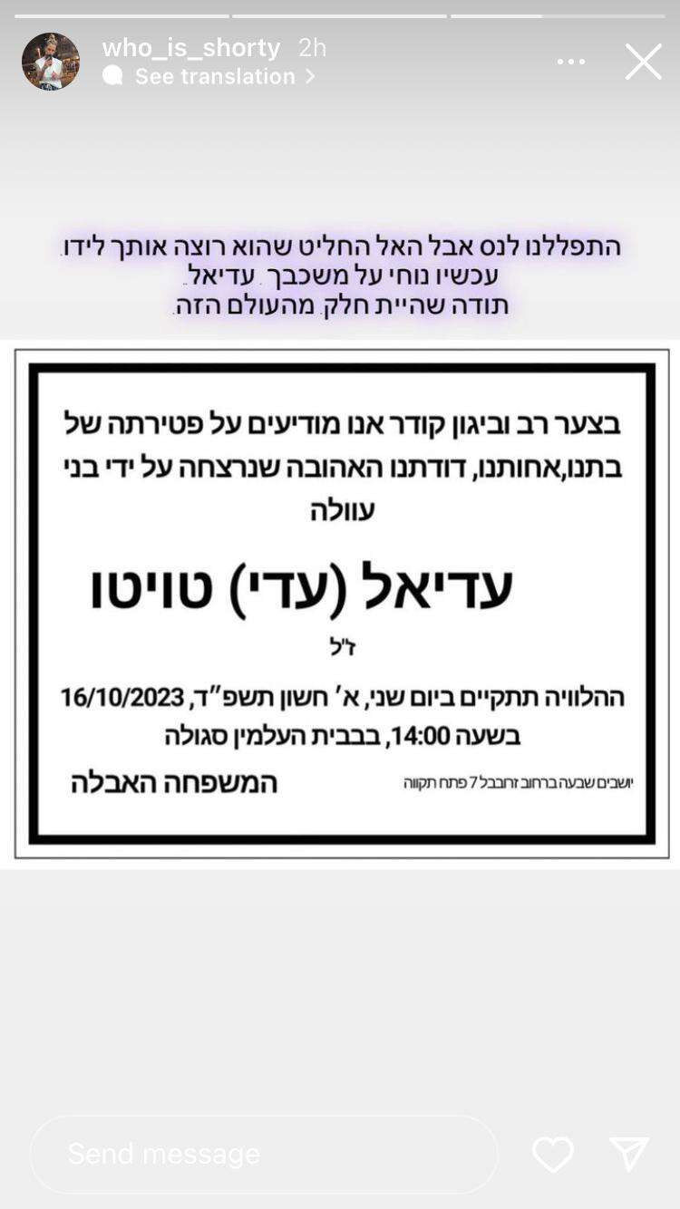 סוף עצוב: מאז מתקפת הטרור של חמאס בשבת שעברה והיציאה למלחמת חרבות ברזל, עדיאל טויטו, מתמודדת העונה השנייה של "MKR המטבח המנצח", הוגדרה כנעדרת יחד עם ישראלים רבים נוספים שבילו במסיבת הטבע "נובה" ליד קיבוץ רעים. משפחתה חיפשה מידע והתראיינה לתקשורת, אך היום (שני) התבשרה על מותה.