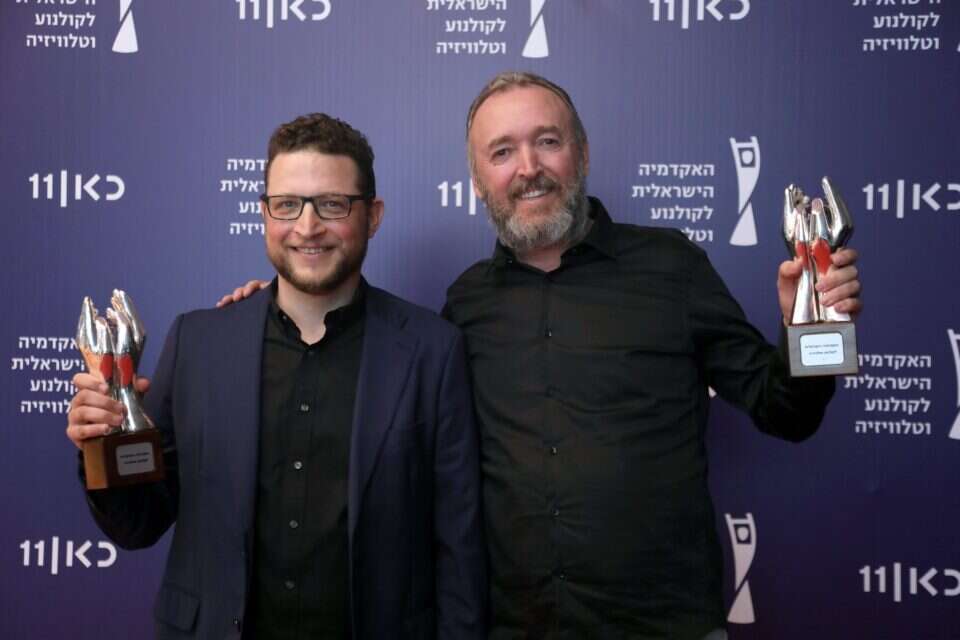 שלום אסייג והבמאי רועי עידן עם פרסי הטלוויזיה שבהם זכו על "מנאייכ" (ארכיון). צילום: גדעון מרקוביץ'