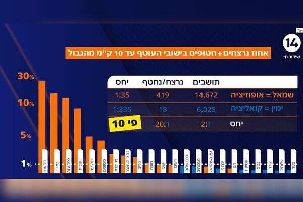 ערוץ 14 הציג היום (רביעי) בתוכנית "מחקר" עם שקף שמציג את הקשר בין הצבעה בבחירות לבין הסיכוי להירצח או להיחטף ב-7 באוקטובר. המסקנה שהוצגה: "מי שהצביע ימין היה לו - סיכוי גבוה יותר להינצל". צפו בקטע: