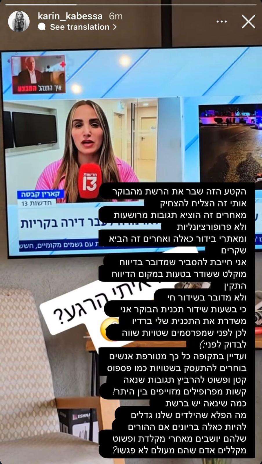 כתבת חיפה והצפון של ערוץ 13, קארין קבסה, הקליטה דיווח מראש בתוכנית "העולם הבוקר" - אך בגלל טעות בהקלטת השידור, נוצרה פדיחה משמעותית שיצרה רגע משעשע ברשתות החברתיות.