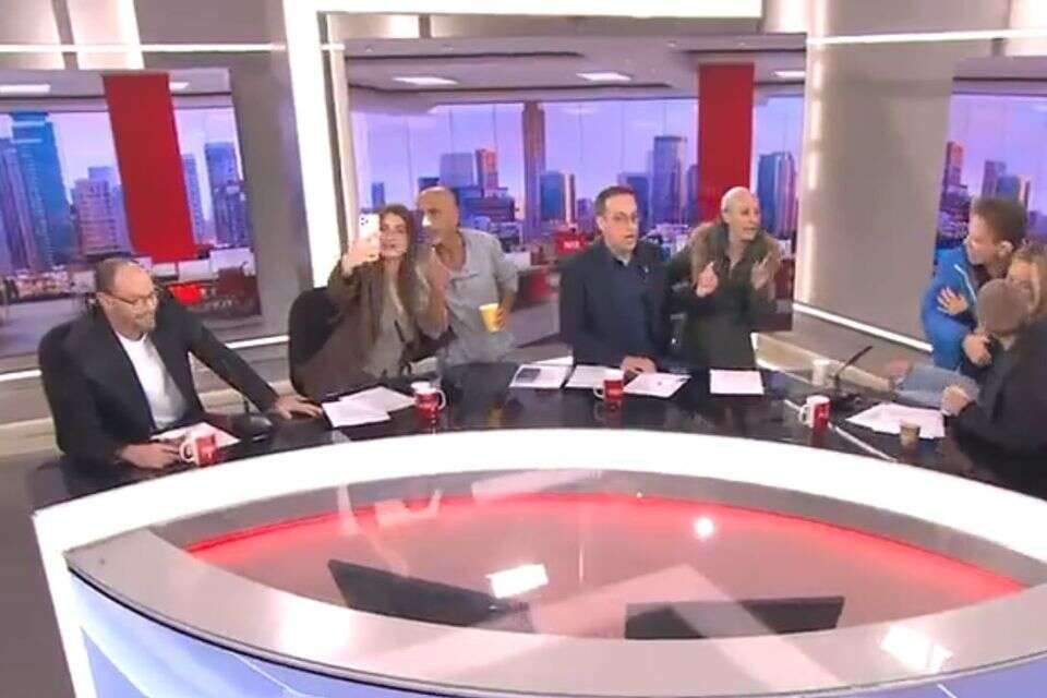 כוכבי ארץ נהדרת התפרצו בשידור חי לאולפן חדשות הבוקר עם ניב רסקין. קרדיט: קשת 12