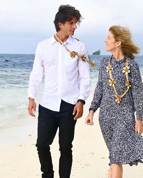 קרוליין קנדי שלוסברג ובנה ג'ק שלוסברג ב"אי קנדי" אשר באוקיינוס השקט