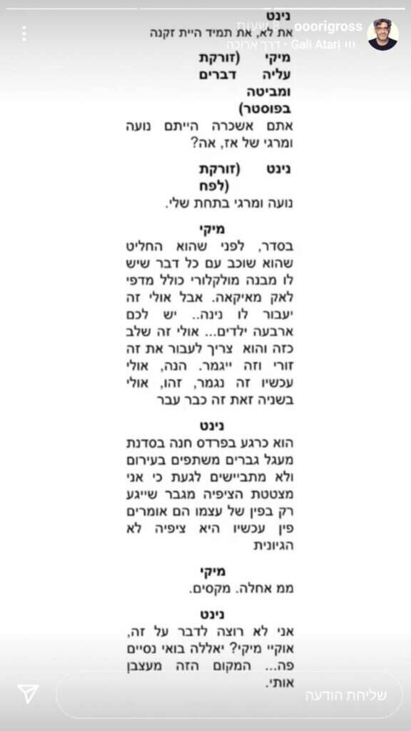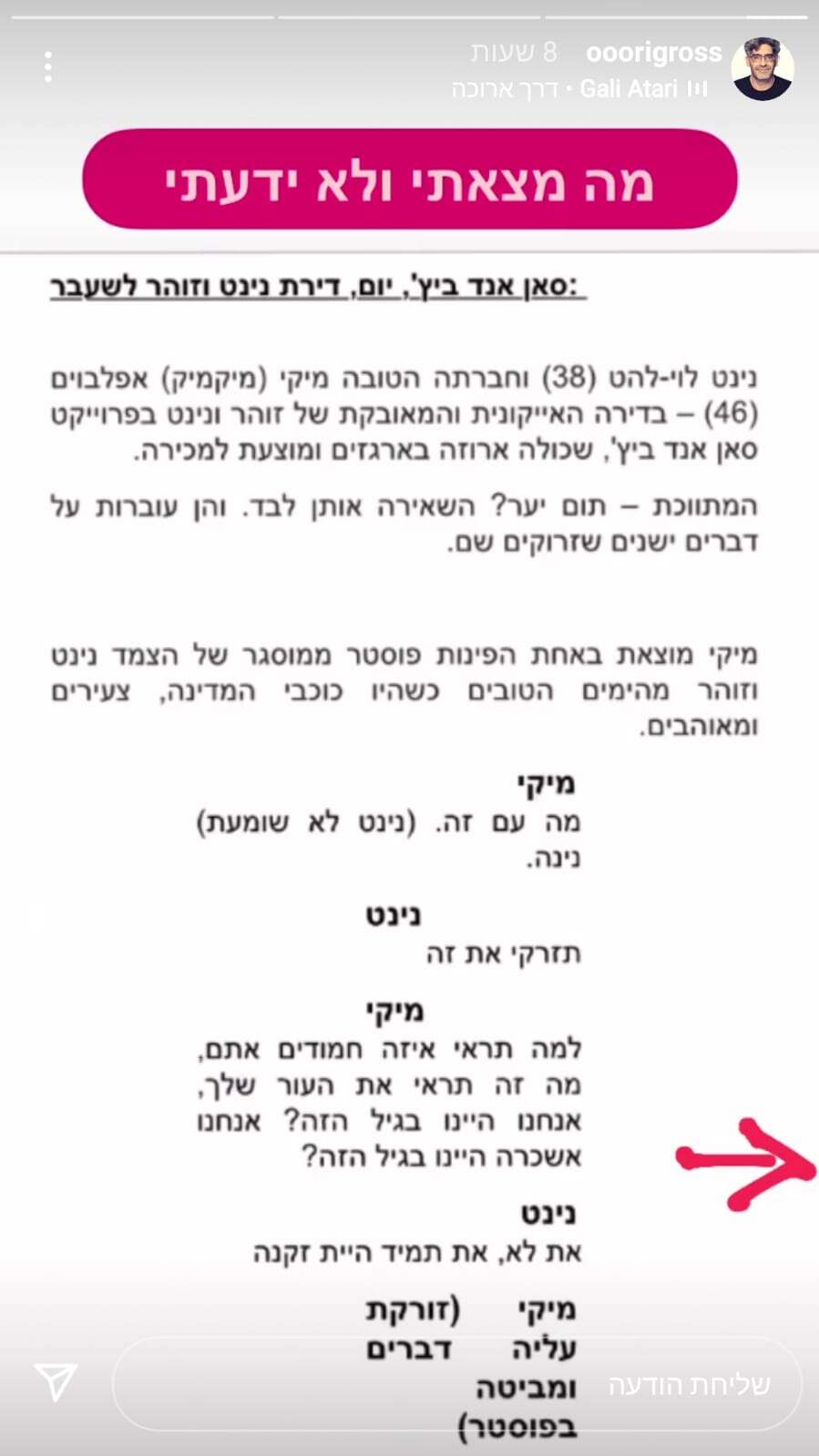 אז איחוד כאמור לא צפוי בשלב הזה, אבל זה עדיין לא אומר שלא נוכל לגלות מה עבר על הדמויות מאז. אחד מיוצרי הסדרה, אורי גרוס, חשף בסוף השבוע את תחילתו של תסריט שנכתב עבור האיחוד, שכאמור היה בשלבי דיבור ראשוניים. על פי התסריט המדובר, נינט לוי (נינט טייב כמובן) ומיקי אפלבוים (מיה דגן) נמצאות כבר באיזור גיל ה-40 לחייהן, והסדרה נפתחת כשהן אורזות חפצים מהדירה הישנה של נינט בסאן אנד ביץ' המיתולוגי.