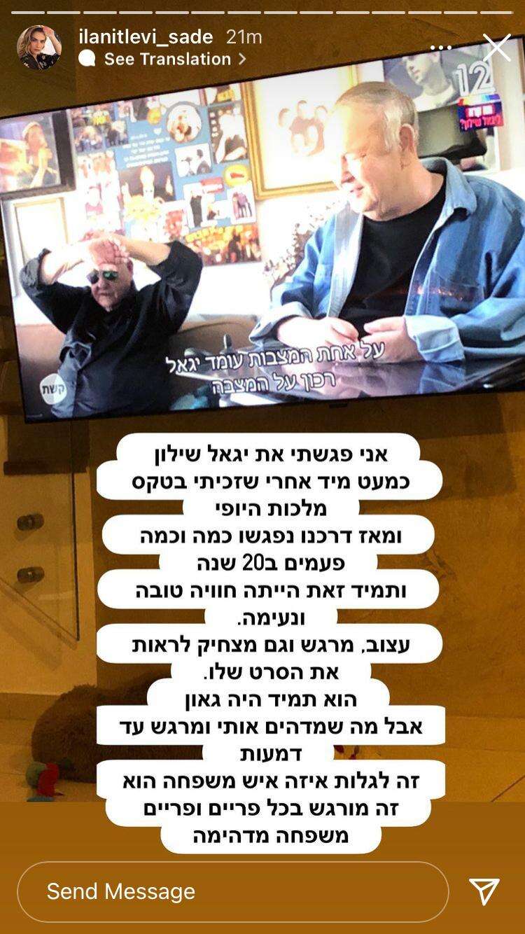 אילנית לוי כתבה: "פגשתי את יגאל שילון כמעט מייד אחרי שזכיתי בטקס מלכות היופי. מאז דרכינו נפגשו כמה וכמה פעמים. עצוב, מרגש וגם מצחיק לראות את הסרט עליו. הוא תמיד היה גאון, אבל מה שמדהים אותי ומרגש עד דמעות הוא לגלות איזה איש משפחה הוא. זה מורגש בכל פריים ופריים. משפחה מדהימה".