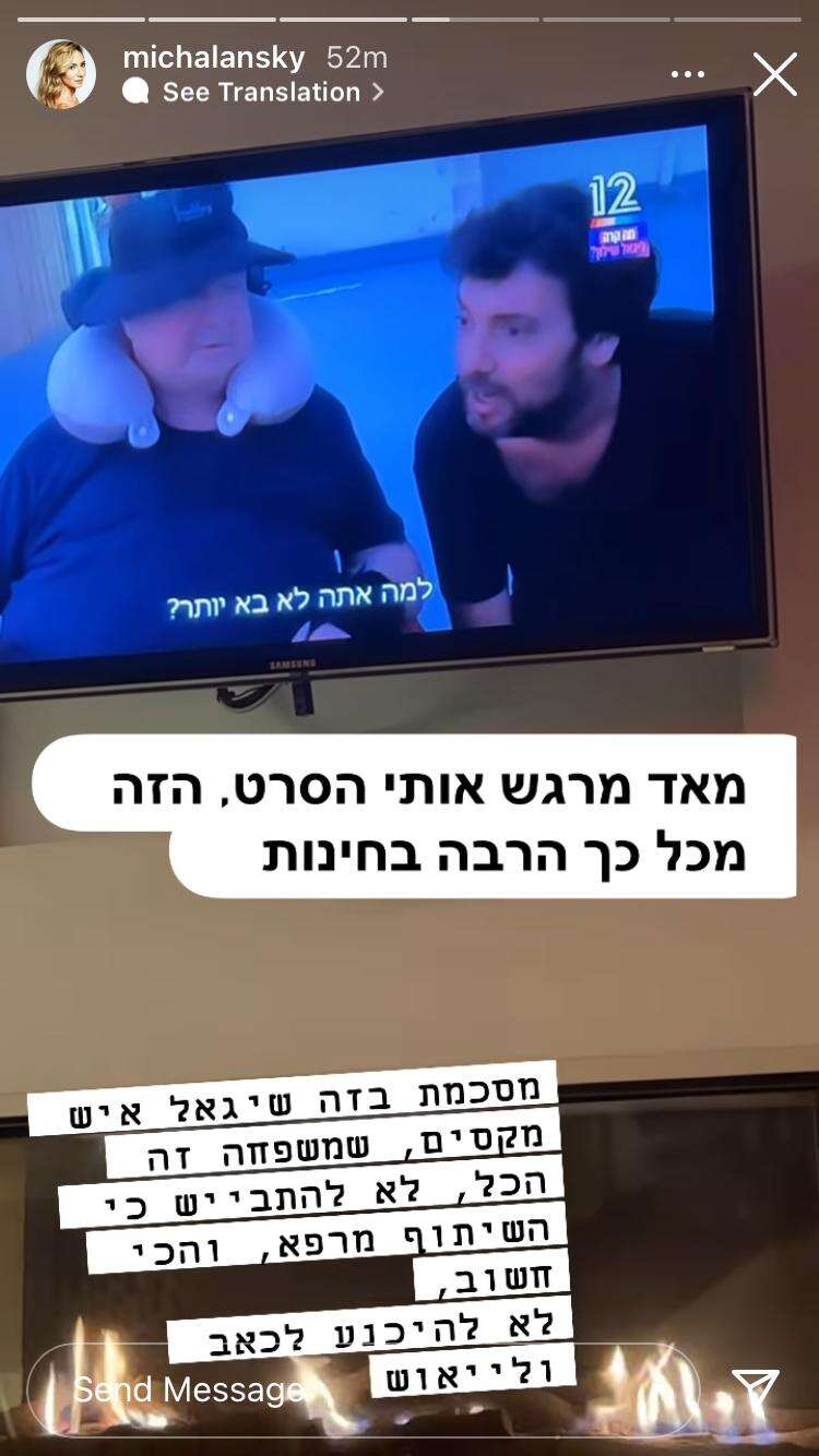 "מאוד מרגש אותי הסרט הזה מכל כך הרבה בחינות", כתבה מיכל אנסקי ששיתפה בעבר כי שיתוק תקף את פניה וסיפרה על ההתמודדות שלה איתו, "מסכמת בזה שיגאל איש מקסים, שמשפחה זה הכל. לא להתבייש כי השיתוף מרפא, והכי חשוב: לא להיכנע לכאב ולייאוש".