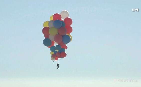 דיוויד בליין מרחף בשמיים עם בלונים // מתוך ערוץ היוטיוב דיוויד בליין