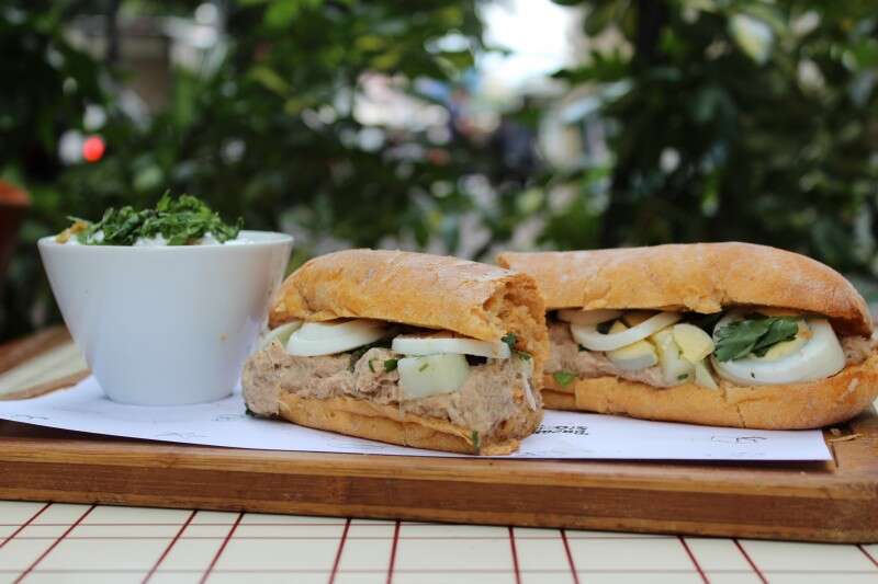 אז הגעתי למקום והזמנו שלושה כריכים שונים כדי לראות על מה המהומה. המבורגר, כריך טוניסאי וכריך קפרזה. קדימה, הבו לי לחם. הטוניסאי (48 שקלים) מכיל ממרח פלפל צ'ומה, טונה, ביצה קשה, תפוח אדמה, זיתי קלמטה ולימון כבוש. עד כאן הכל במקום. גולת הכותרת היא ללא ספק הלחם עצמו, לחם צ'ומה, רך ועסיסי עם טעמים ברורים של צ'ומה, מעט חריף ובעיקר, טרי. מגניב לגמרי ושינוי מרענן מהלחמנייה המטוגנת.