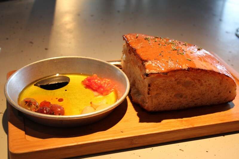 אחרי הפוקצ'ה שהייתה אחת הפוקצ'ות הגדולות שראיתי, ולוותה בצלוחית קטנה שהכילה בתוכה שמן זית, זיתים, בלסמי מצומצם, עגבניות מעושנות ושום קונפי. נכון, מדובר בשיטת הגשה חדשנית וחביבה שנותנת לשמן להתערבב עם השום ולזיתים להתמזג בעגבניות, אבל החיבורים האלה לאו דווקא עשו טוב למטבלים, לעומת זאת, הסועד שהיה איתי דווקא נהנה מהבלילה ולכן, צפחת המטבלים הקטנה, נתונה לויכוח.
