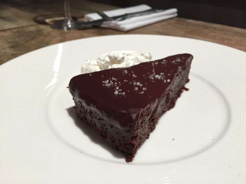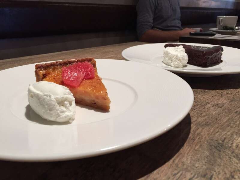 אי אפשר באמת לאכול כלום אחרי ארוחה כזו, אבל טראט אשכולית אדומה ונמסיס שוקולד היו חזקים ממני (38 ₪ כל אחד). האשכולית הייתה מעניינת אם כי מרה מדי, אולי לזה התכוונו ידי הפטיסייר? ואולי האשכולית הלכה טיפה רחוק מדי. הנמסיס היה עדין, נימוח, טעם חזק של שוקולד מריר איכותי והאפייה העדינה (בבאן מרי) הורגשה בכל ביס. אני אפילו מודה ששאלתי אם יש עוגה שלמה לקחת הביתה, אין. מכינים אותה מדי בוקר וכשהיא נגמרת, פשוט מחכים למחר.