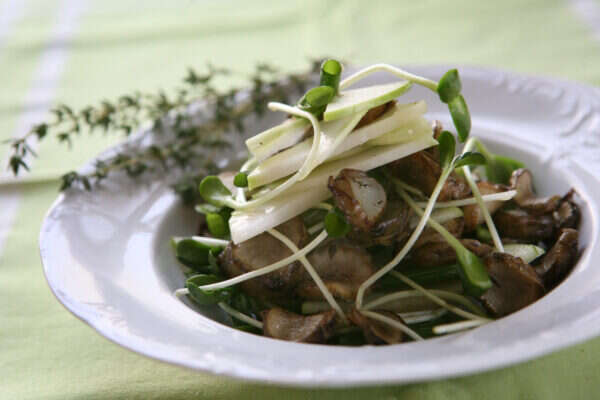 סלט ארטישוק ירושלמי צלוי, תפוחי עץ חמצמצים וקולורבי