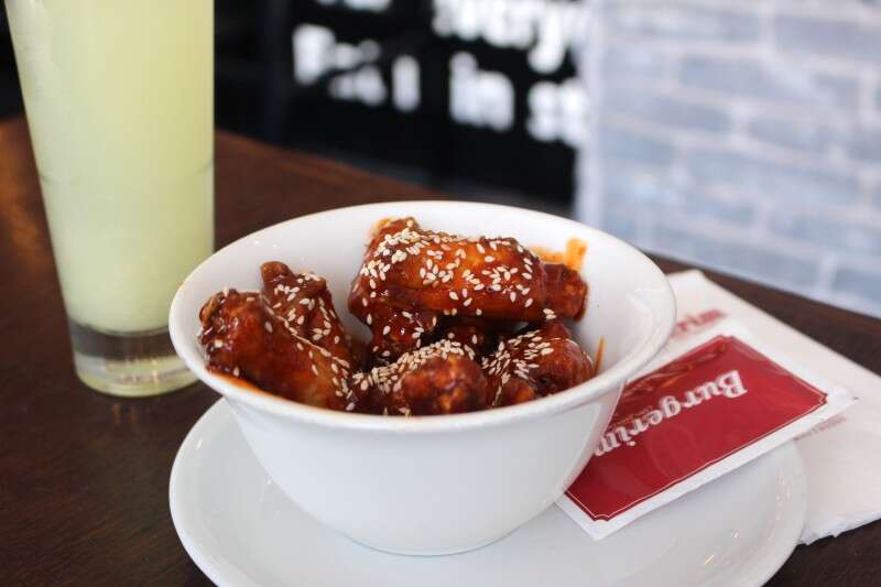 לפני ההמבורגרים, החלטנו לנסות מנה של כנפי עוף ברוטב חריף (21 ש"ח). כנפיים זה דבר מלכלך, אז אין מה להתלונן על הדביקות למרות שבהחלט אפשר היה לשים פחות רוטב. הכנפיים עצמן לא רעות ועשויות במידה, לא יבשות ומתפרקות בקלות מהעצם. הרוטב עצמו קצת חזק מדי, ונוטה לכיוון הדביק. אבל משהו במנה הזאת עובד בכל זאת, אולי זה ה-value for money שלה.