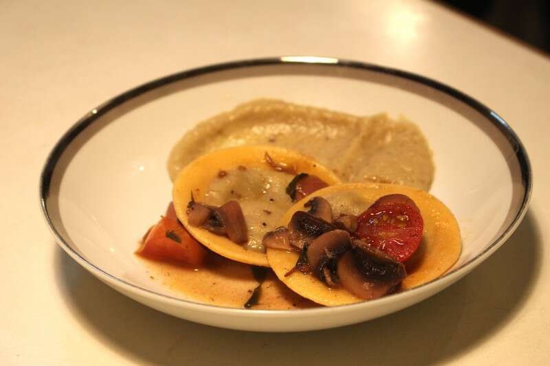 העיקריות הוגשו בכלים אישיים, כי עם כל הכבוד לארוחה משותפת, יש רגעים באוכל שאתה רוצה את הלבד שלך. רביולי לחי עגל בעיגולים מושלמים, בציר בקר עם פטריות ועגבניות, על מחית ארטישוק ירושלמי ומנה של שרימפס וקלמרי ביין לבן, על ענן של פולנטה רכה. זה היה בדיוק קצה גבול היכולת של הסועדים.