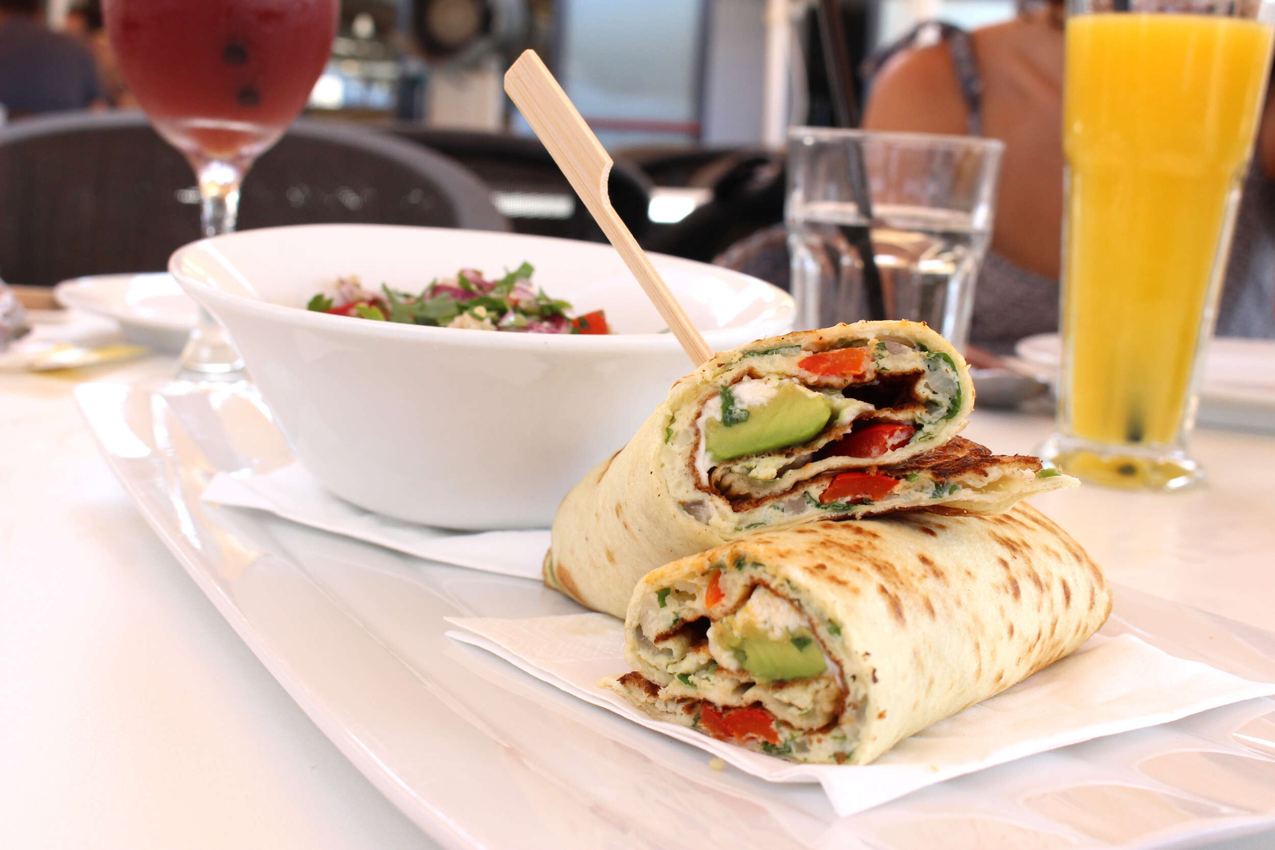 בחרנו גם בארוחות בוקר ספרדית (45 ש"ח) שזה בעצם רול של טורטייה ובתוכה אומלט עם תפוחי אדמה, בצל, פלפלים, אבוקדו וגבינת פטה שעוטפים את הכל. הארוחה מגיעה עם שתייה לבחירה וסלט קטן. בחרנו בסלט טבולה שהתברר כמעולה, פטרוליזיה טרייה, פירורי בורגול עשויים היטב וכמות מספקת של לימון. כל מה שהופך סלט בורגול למעולה.