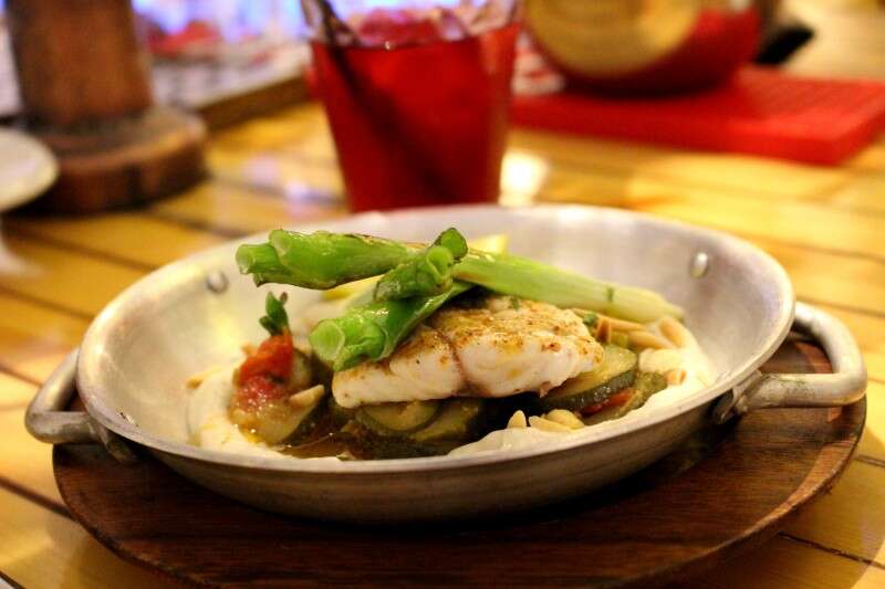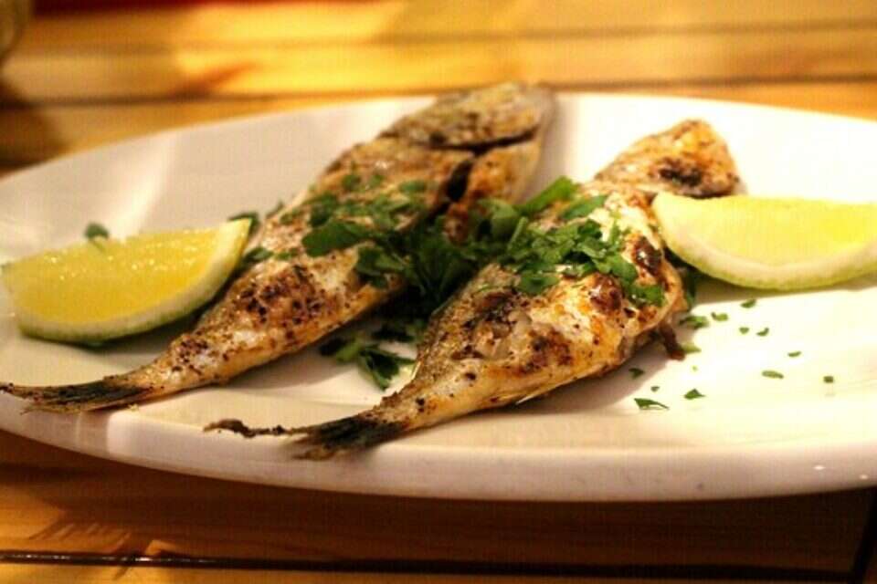 העיקרית השנייה היתה שני דגי מרמור לא גדולים, שהגיעו אלינו לשולחן מטוגנים. המרמור, דג ים בעל טעם עדין, לא היה גדול, אבל שמנמן וכיף לפרק אותו בידיים שרטובות מלימון סחוט. היה מתבקש שיגישו לנו מנה שאפשר לאכול בידיים, לפרק ולהתעסק, בסופו של דבר זה הופך את כל הארוחה להרבה יותר טובה.