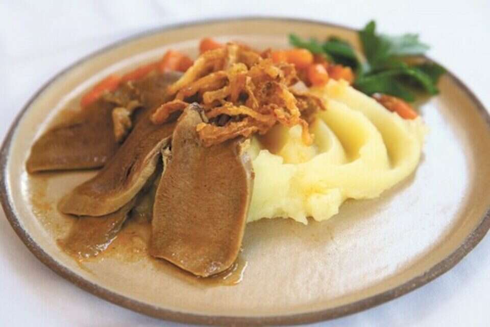 לשון עגל עם צימעס ופירה