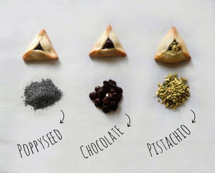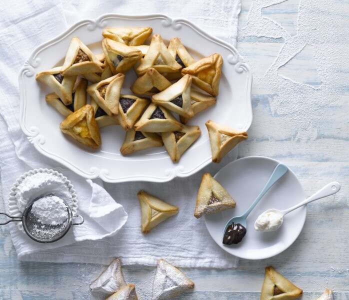 אזני המן טעימות בגודל קלאסי ממולאות במבחר טעמים כמו שוקולד, פרג, חלבה ותמרים.
