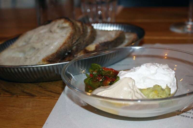 ובחזרה לכולא, המסעדה המארחת. הזמנו לשולחן לחם טרי שנאפה בטאבון (21 ש"ח), לחם מחמצת משגע מהסוג שגורם לך להיות שבע עוד לפני העיקריות. הוא הוגש עם קערה קטנה של טחינה ופלפלים חריפים בשמן זית, ממרח גאוני של לימון כבוש וקצת שמנת חמוצה. קערה כל כך מענגת שעושה חשק לעבור לגור בתוכה.