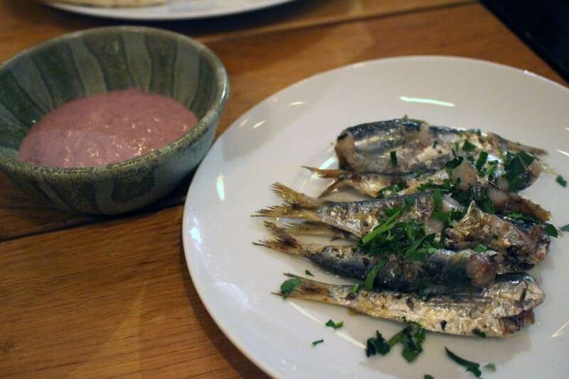 הסרדינים על הגריל, מנה שמוגשת בסבידה מיום הפתיחה, היו הכי טריים שאפשר, והוגשו עם מטבל מעניין של לבנה וטפנד זיתים. שוב תזכורת שאנחנו בעיר התחתית של חיפה, רחוקים רק במעט מעכו, ולבנה וזיתים שייכים בדיוק לכאן. זאת היתה תוספת מקורית לדגיגים השמנמנים אבל חמוצה במידה כזאת שלא כולם אהבו. טרטר הפלמידה, שהיא בעצם סוג של טונה, הוא שוב דוגמה למינימום התערבות במנה. הפלמידה הוא דג שעובד מצוין כבוש או אפילו נא ופה רק שידכו אותו בעדינות לציר חמצמץ ועדין עם הרבה שמן זית והתוצאה? רותקו ופולוק.