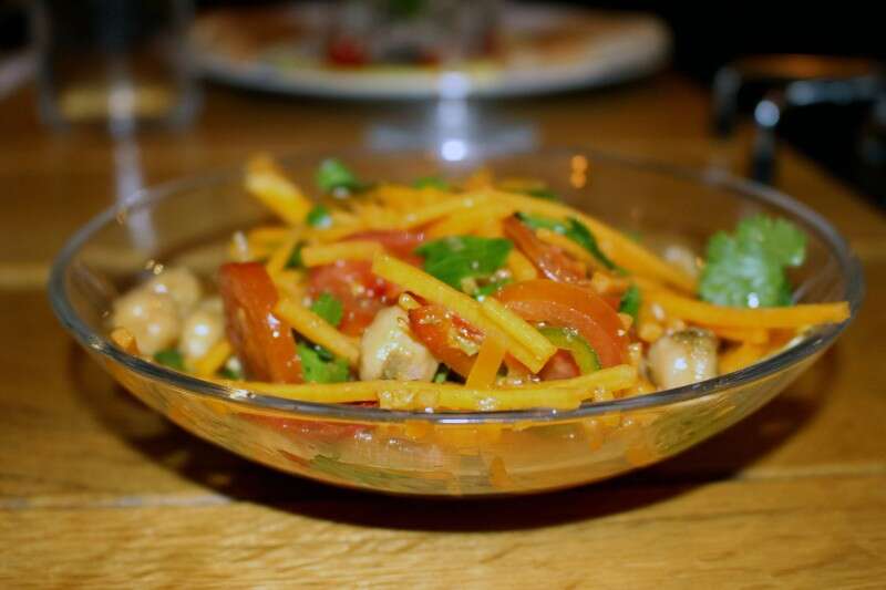 גם סלט של גפרורי דלעת, גרגירי חומוס ועשבים (24 ש"ח) יכול היה לקבל קצת יותר תשומת לב. כמה כיף לאכול דלעת נאה, ירק שבדרך כלל מבשלים עד מוות, אבל גם העקצוץ של הפלפלים החריפים מסביבה לא היה מספיק והיה נדמה שהיא קצת משעממת או אולי סתם צמאה ללימון. אבל הרמזים הקטנים האלה לאנמיות הסתיימו בערך כאן וסללו את הדרך לצלחות מרגשות הרבה יותר, אחת אחרי השנייה.