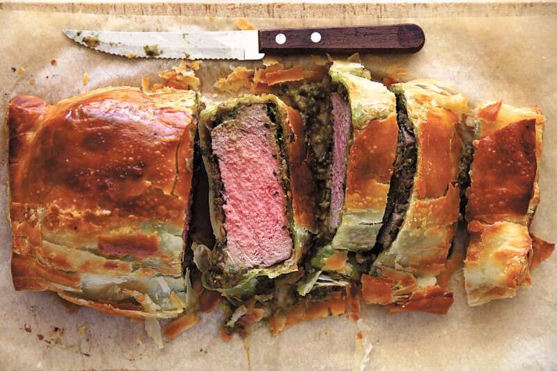 4. סוגרים את הבצק מסביב לסינטה ומהדקים כך שיעטוף את הנתח מכל הכיוונים.