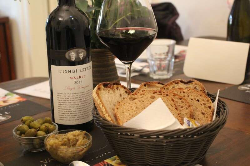 מעבר ליין, שהוא הכוכב של הארוחה כיאה למסעדת יקב, בולט בקסמו תפריט הספיישלים של המקום שבנה גיל, המונה רשימה קצרה של מנות, חלקן עיקריות וחלקן ראשונות, וחשוב לשאול על כך את המלצרים. קיבלנו המלצות על היין ובסופו של דבר בחרו עבורנו, על פי העדפותינו, את המלבק, יין  אדום עשיר שכולם בשולחן אהבו. מעבר ליין, היה כיף לגלות שתשבי הוא מקום שמייצר עוד דברים מאפס - כלי מטבח מופלאים מקרמיקה שנעשים על ידי אחד מבני המשפחה, לחמים משגעים שנאפים במקום, ריבות תוצרת בית, ויש גם תנור פחמים אמיתי שמצדיק את כל הפיצות בתפריט. אבל אנחנו באנו לאכול גורמה והפיצה לא תכניע אותנו. מה שכן יכול היה להכניע אותנו הוא הלחם שהגיע לשולחננו לפני הארוחה, מלווה בחצילים שרופים, טחינה וחמאה. יכולנו להתבלבל ולחשוב שאכן בטעות הגענו לבית קפה, מה שכל כך רצינו להימנע ממנו, אבל הלחם היה כל כך משובח שהיה לנו מאוד נוח לשכוח מההקשר הרגיל בו הוא מוגש.