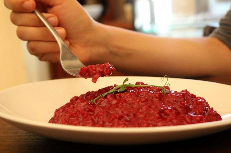 ריזוטו הסלק, עשוי ריזוטו אקוורלו, שנחשב לזן המשובח ביותר של אורז לריזוטו וזאת אכן היתה מנה משובחת, גם בגלל הפרמז'ן האיטלקי המעולה ועל אף הציר הצמחוני שכשרות המקום מכתיבה.