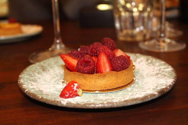 לקינוח הזמנו טארט תותים ופטל ועוגת גבינה. הפטל היה טרי שזה נפלא, ושני הקינוחים היו טובים למרות שסבלו מבצק מעט דחוס ועבה מדי. בתשבי מוכרים פרלינים של ולרונה וקשה היה לנו ללכת הביתה מבלי למלא לנו קופסה קטנה בשוקולד הצרפתי הטוב בעולם.