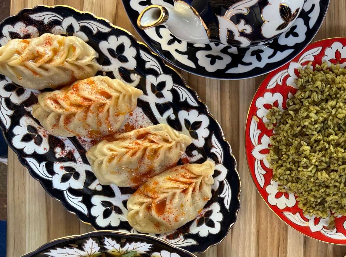 מבחר גדול של מנות אפשר למצוא במקום, מאושפלאו מלכותי ובחש מבושל ממושכות בדיוק כמו במולדת (עטוף בשק כותנה, עשיר בכוסברה ובשומן כבש) עד מרק הדושפרה ושלל מאפי גוג'דג'ה הממולאים במליות שונות (כמו בשר ושומן כבש, דלעת ותפוחי אדמה). ישנם אפילו ימי שישי שאפשר להתענג בהם גם על קציצות דגים, ובחורף מוגש חמין בוכרי המבוסס על אורז, שפע ירקות, בשר ועצמות מח.