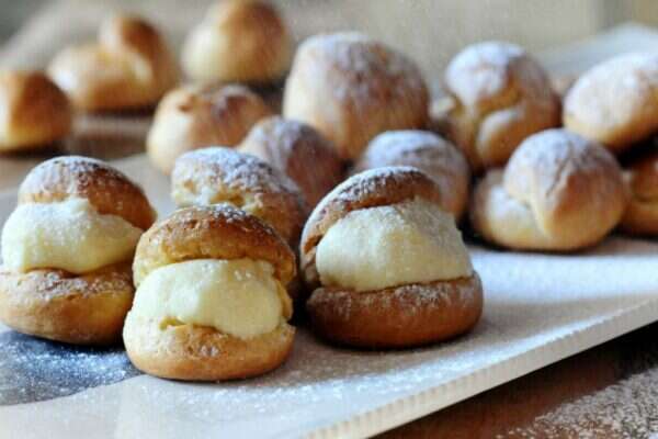 פרופיטרול - פחזניות ממולאות קרם וניל עם גלידת ריבת חלב ורוטב שוקולד;