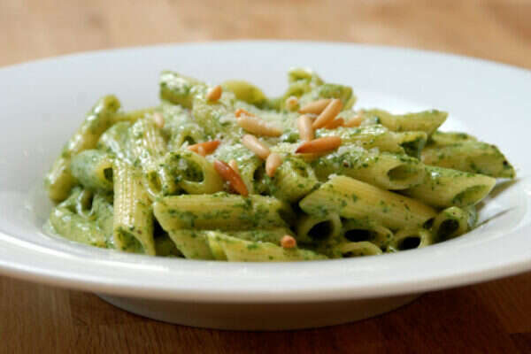 פסטה פנה עם רוטב שמנת, שום, תרד וגבינת גורגונזולה