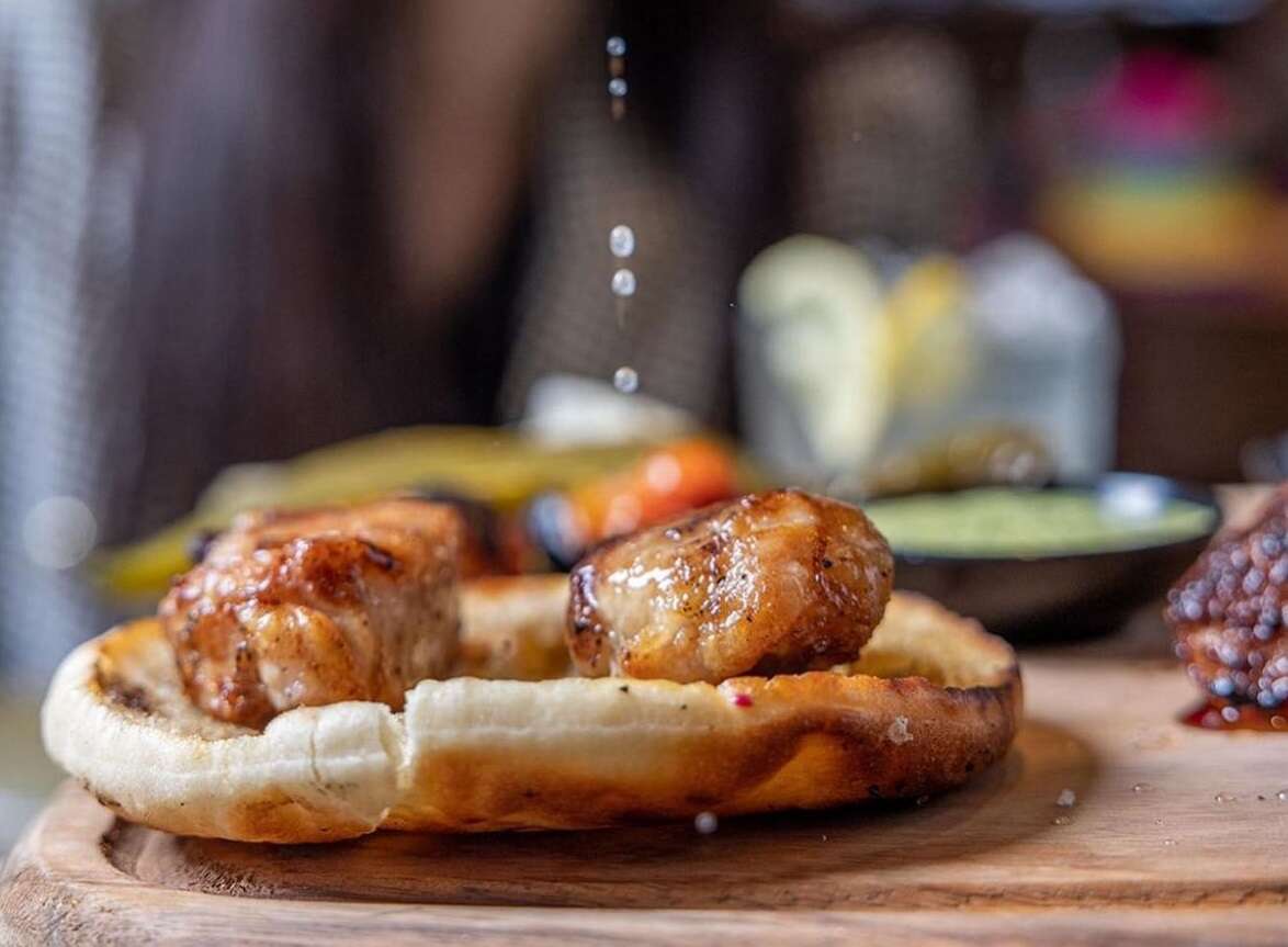מהתפריט אפשר לבחור שיפודים או מנה עיקרית וכל התוספות מסביב כלולות במחיר, כמו בגרסה המסורתית של הז'אנר. לצד קוקטייל ערק אשכוליות ממותג של המקום - כן, ב"סטקייה" הזאת נהוג להנות מהמנות לצד דרינק של קוקטייל או יין - הזמנו שקדי עגל מתפריט הספיישל (168 שקלים). הם הגיעו ארבעה בדיוק במידת העשייה הנכונה על פיתה שרופה עם קרם שקדים וסלסת עגבניות. לצידם הונח סלטון עלים ושומר שהיווה קונטרה נפלאה לשומניות, וגם רבע לימון שהומלץ לנו לסחוט מעל. ככה פשוט, ככה חכם וטעים.