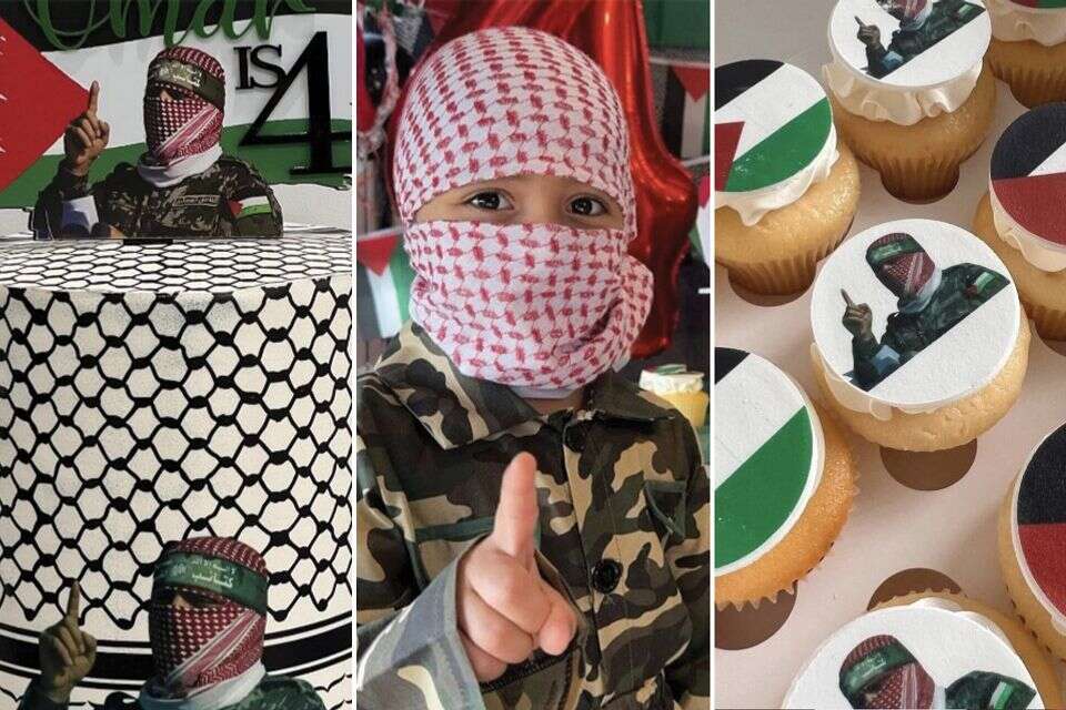This is 4 year old Omar, from Sydney, Australia. The theme of his birthday this year was "Free Palestine"! He had a Hamas/Jihadist style cake as well as Palestinian Flag cupcakes d and Gaza themed decorations and costumes. You can’t make this shit up!#israel #palestine #aus pic.twitter.com/udLCTLT9VL