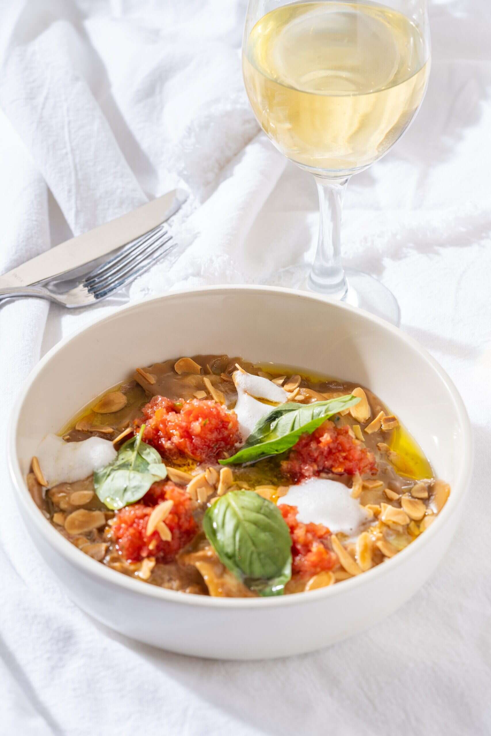 טוסט שמנת פטריות: פורטובלו צלויות בשמנת וטימין, גבינות חמד, מוצרלה ופרמז'ן, בזיליקום ובצל ירוק. מוגש עם איולי כמהין לצד סלט תרד.