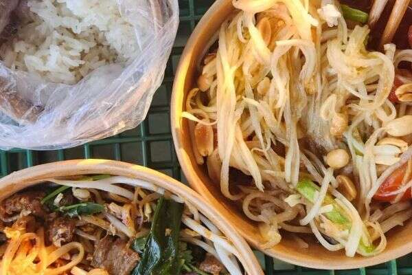 המיקום באמת בלתי רגיל במונחים ישראליים. מדובר בחצר עצומה עם המון נישות קטנות שבהן מקומות ישיבה נסתרים ומדשאה גדולה בה אפשר לשבת על ארגזים, או להביא מחצלת וליהנות מהקרבה לדשא. מדובר בדוכן צהוב, לא גדול במיוחד, מעוטר בדגלי תאילנד קטנים ומטבח פתוח בו ניתן לראות את העובדים חותכים, מטגנים ומקפיצים. את המנות מקבלים בסל פלסטיק גדול ששימש את הסבתות שלנו לגיחה למכולת. התפריט לא מאוד גדול, אפילו קטן, אבל מככבות בו כמה מהקלאסיקות של הז'אנר וכולן מבוצעות היטב.