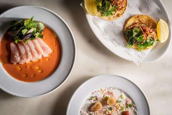 בגזרת הנאים כיכבו טרטר בקר עם רוטב חלמונים ובצל חרוך (62 שקלים), סשימי דג עם גספצ'ו, עשבים ושמן ירוק (72 שקלים) והדובדבן שבקצפת: פינצ'וס, נשנוש שמורכב על קיסם ומהווה תוספת כיפית לדרינק. המחיר נע בין 9 ל-12 שקלים.