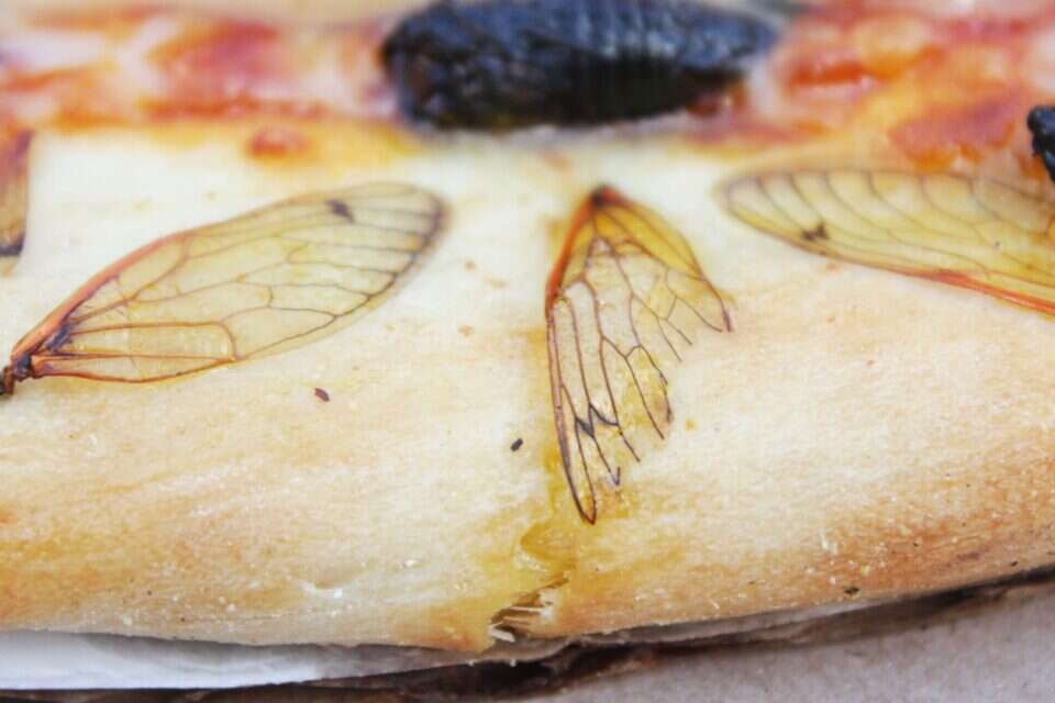 פיצת ה-Spicy Thai Cicada Pie הנעשית בפיצרייה מכילה גבינות מוצרלה ופרובולנה ומחוזקת בכרוב, פטריות, בצל ירוק, מנגו, כוסברה ורוטב תאילנדי חריף. אך בין תוספות הפיצה השגרתיות ניתן למצוא גם חרקי ציקדה מקומיים וחסרי מזל, שנאספו מעצי הסביבה וטוגנו קלות עם אבקת צ'ילי ושמן שומשום, בעוד הכנפיים שלהם נאפו לתוך הבצק. העדות המצולמת לפניכם. יש לציין שבית העסק עדיין לא מציע את הפיצה המפושפשת למכירה רחבה, אלא ערך אירועי טעימה מצומצמים ובוחן כרגע את האפשרויות המשפטיות שלו, שכן יש משהו בעייתי בציד החרקים.