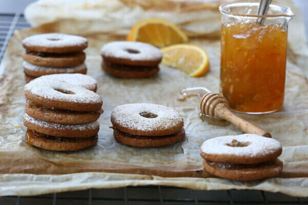 עוגיות סנדוויץ' דבש וריבת תפוז