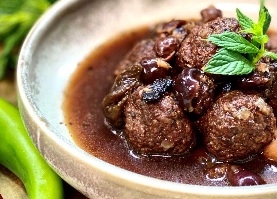 עיקריות כעת. זוכרים שכתבתי למעלה על צלחת שנאלצתי לזרוק לפח בגלל כורכום? זה הגונדי עוף, בליווי גרגירי חומוס וכורכום, אבל כמה הוא היה טעים. אחר כך הגיע הסופריטו - קציצות בשר ותפו"א ברוטב, כן כן, כורכום, וראס אל חנות. זה היה רגיל, לא עפנו על זה וקפצנו מהספה בהתלהבות, אבל חיסלנו גם את זה. ולבסוף, המנה שהכי אהבנו, קציצות בקר ונענע יבשה ברוטב דובדבנים ופלפל ירוק קלוי. את המנה הזו ערבבנו עם הקוסקוס והמשמש מהפסקה הקודמת. ויזואלית זה נראה כמו אסון וזו הסיבה שאין בכתבה הזו הרבה תמונות, אבל זו באמת הייתה מנה מהנה. פיקנטיות מהרוטב של הקציצות עם חתיכות מפתיעות של משמש מהקוסקוס, שילוב מוזר אך ראוי.
