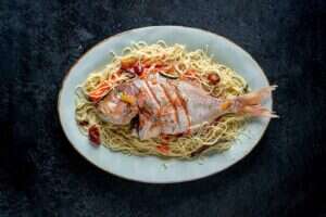 המנה הנבחרת: דניס אדום על פסטה בציר של עצמו עם זוקיני ובוטרגה.