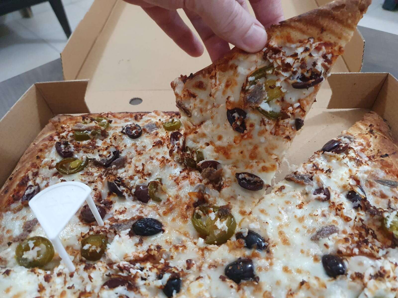 חשוב לציין, סניפי דומינוס פתוחים במהלך החג ונמכרות בהן גם הפיצות הרגילות, אך הפעם, לא באנו בשבילה. גם הפיצה הכשרה לפסח של החברה נמצאת בתפריט שלה כבר זמן רב, מאחר שמדובר בפיצה ללא גלוטן שנמכרת כל השנה. לעומת הפיצה העגולה הרגילה של הרשת, היא מגיעה בצורת ריבוע, וזה לא ההבדל היחיד – גם המרקם וטעם הבצק עצמו שונים, מן הסתם. אך אין זה בהכרח דבר רע.