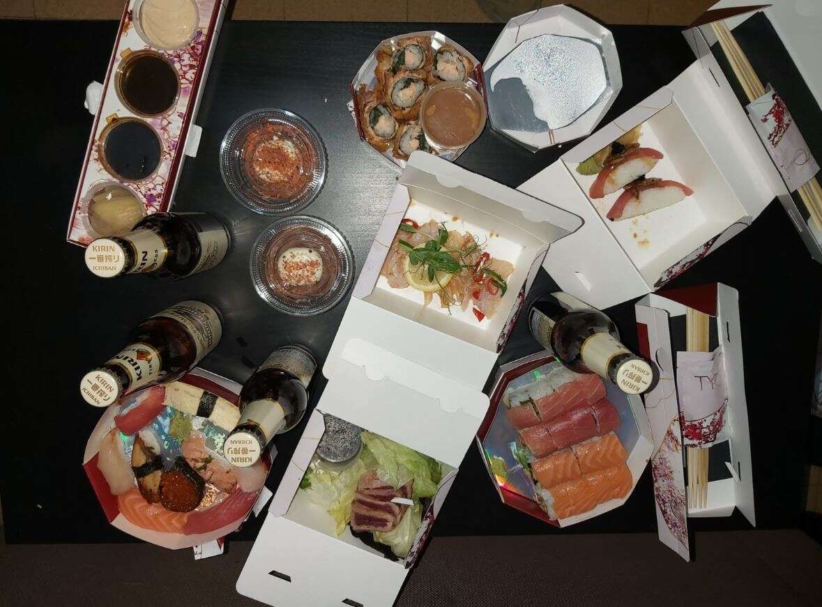 האוכל במשלוח הגיע חם (מה שהיה צריך להיות חם לפחות), טרי ומחולק לקופסאות עם שם המנה עליהן. למרות המגוון הרחב של המנות, הלכנו על מנות "קלאסיות" יחסית עם תוספות סטנדרטיות ועדיין התענגנו על כל ביס: קומבינציית ניגירי, סושי ספייסי טונה, סושי ספייסי טורו סלמון, סלט סשימי, טטאקי לוקוס וטונה פואגרה. טעים במיוחד היה הסושי סלמון תרד- מצופה בפנקו עם לימון ומיסו. לצד המנות קיבלנו גם כמות נדיבה של רטבים.