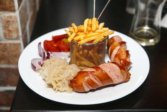 גם כאן חוטא המקום בתפריט "מבולגן". יש פה מנות לרעבים יותר ופחות, מנות ברים רגילות לצד מנות אתניות שונות דוגמת פילמני או וורניקי מהמטבח הרוסי, חינקלי מהמטבח הגיאורגי, דגים ופירות ים, נקניקיות בסגנון גרמני והמבורגר מהמטבח....הישראלי?