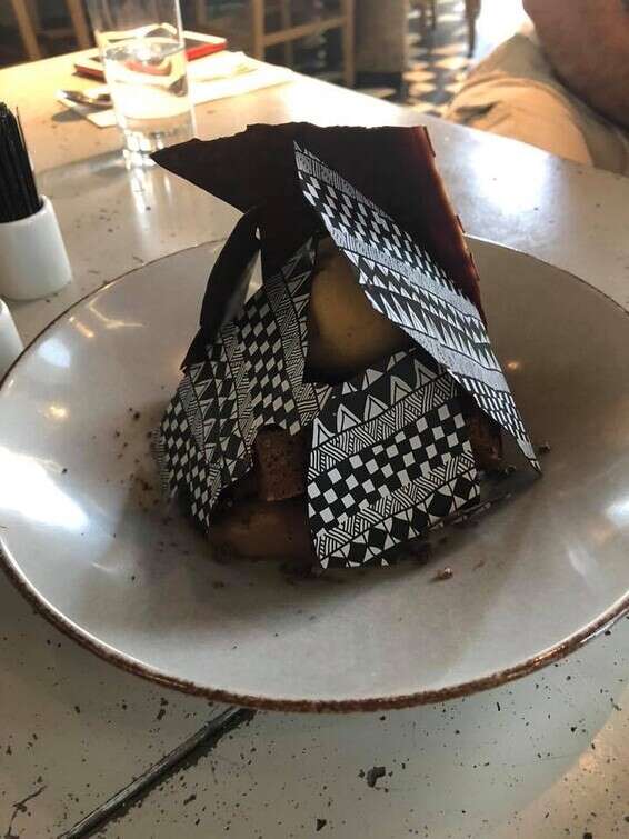 מעבר לשוקולד האיכותי, לקרם המתקתק והנהדר ולביסקוטי הפריך, הקינוח מעוטר בדפי שוקולד שמעוצבים בהתאמה לעיצוב של המסעדה, הגשה מיוחדת שמוסיפה לקינוח המעניין שהצליח לשלוח אותנו להתרסק אצלי על הספה ולנמנם כאילו שזה שעת מנוחה בגן.