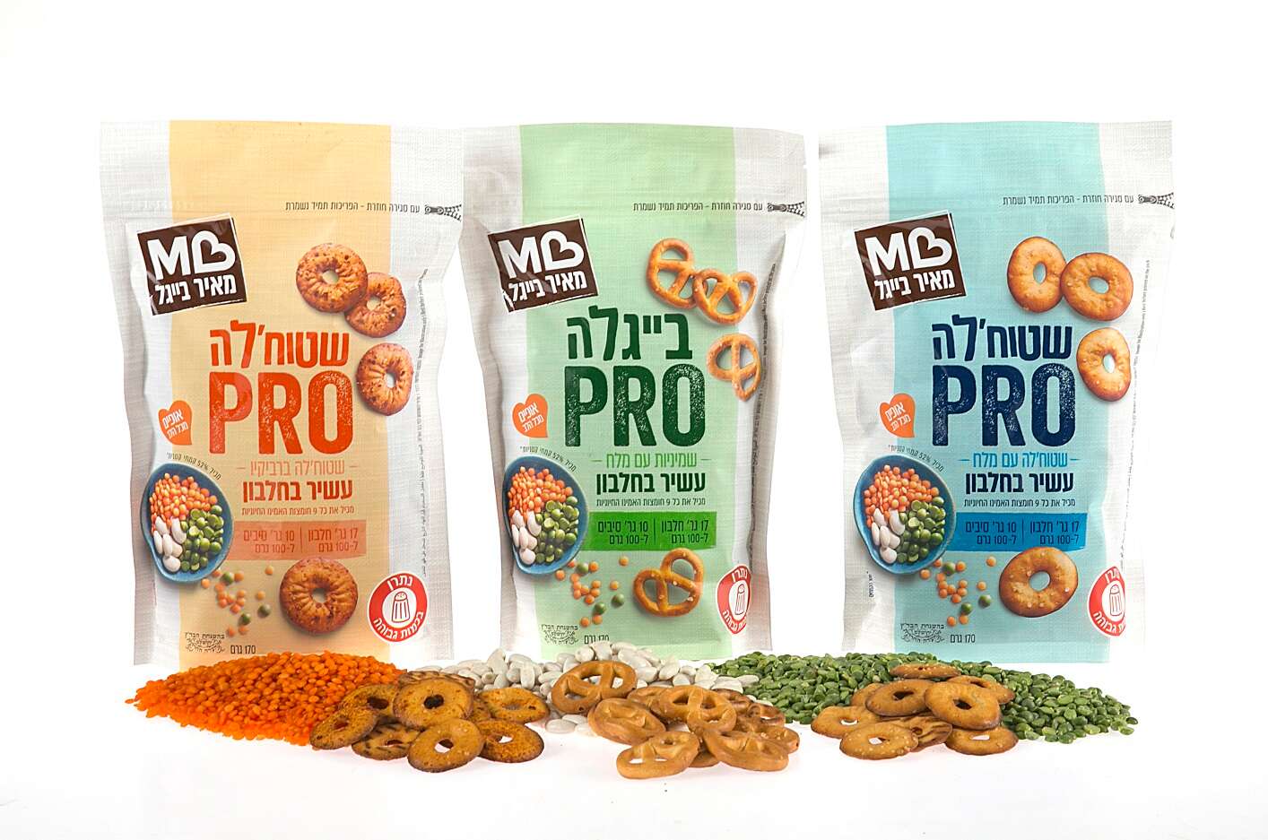 מדובר בבייגלה עם ערך מוסף, בייגלה פרו אפוי עם 17 גרם חלבון ל-100 גרם. החטיפים האפויים מכילים 52% קמחי קטניות ו-10 גרם סיבים תזונתיים. בחופן בייגלה פרו המכיל כ-20 יחידות יש 5 גרם חלבון, 3 גרם סיבים תזונתיים וכ-120 קלוריות. בנוסף, משיקה החברה אריזה חכמה לסגירה חוזרת, כשההשקעה הכוללת במהלך נאמדת בכ-12 מיליון שקלים.