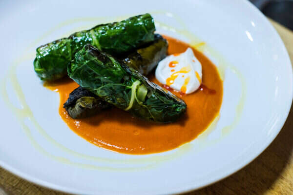 עלי גפן ממולאים דג בקרם עגבניות זעפרן לימוני