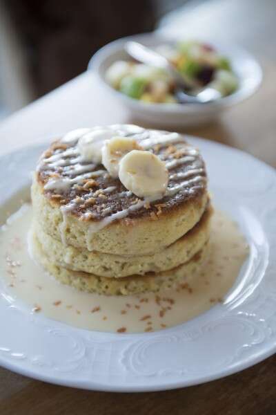 פנקייק עם בננות, חלב ממותק וקוקוס קלוי